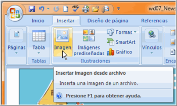 - Al hacer clic en la pestaña Insertar aparecerá una sección con estas opciones.