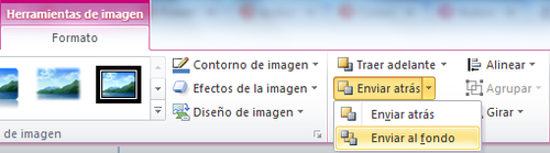 - ENVIAR AL FONDO .- Muestra la imagen seleccionada bajo los objetos que se encuentren en su mismo nivel.